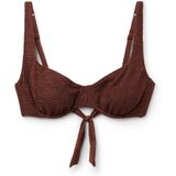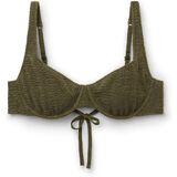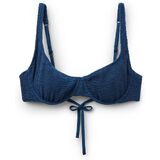 Unpadded balconette bikini top with underwire. The structure of the cups perfectly embraces and supports the bust, while the side drawstring can adjust the fit. Ideal for larger busts. The style features a crinkle fabric with a three-dimensional effect. Adjustable straps and thin tie closure on the back.