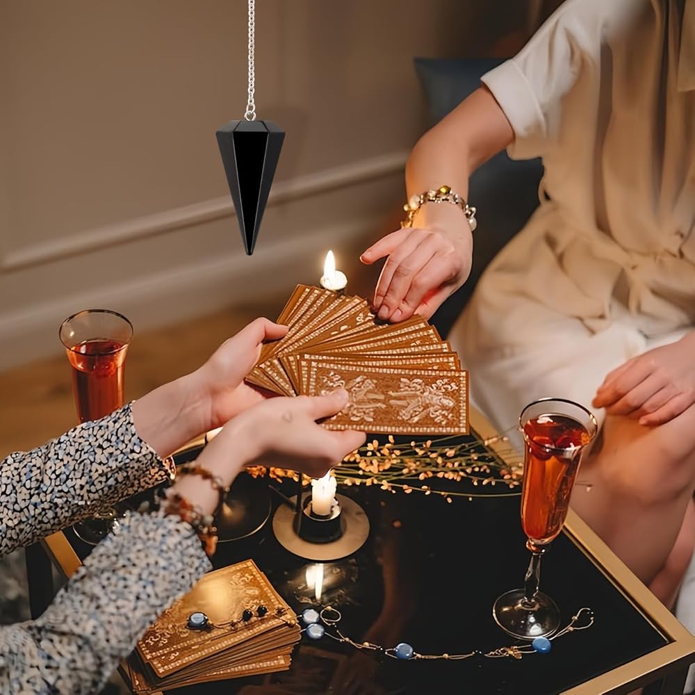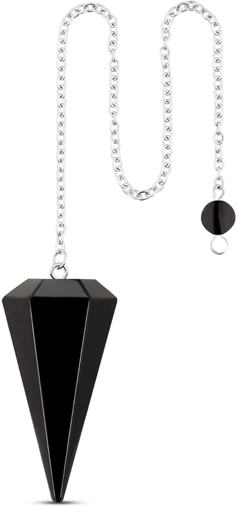 【Pendulum Crystal】Crystal Pendulum is a spiritual tool that can be used for meditation, energy purification, divination, witchcraft rituals, tarot cards, fortune telling, reiki healing, hypnosis, etc. Chain Length is 6.57-6.92 in. Pendulum Width is 0.74-0.76 in. Pendulum Height is 1.5-1.53in. Weigth is 0.024-0.028lb.
