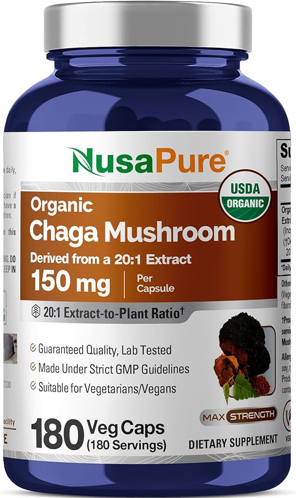 NusaPure Chaga Mushroom, 150 mg , 180 Veg Capsules (USDA Organic, Vegan, Non-GMO)