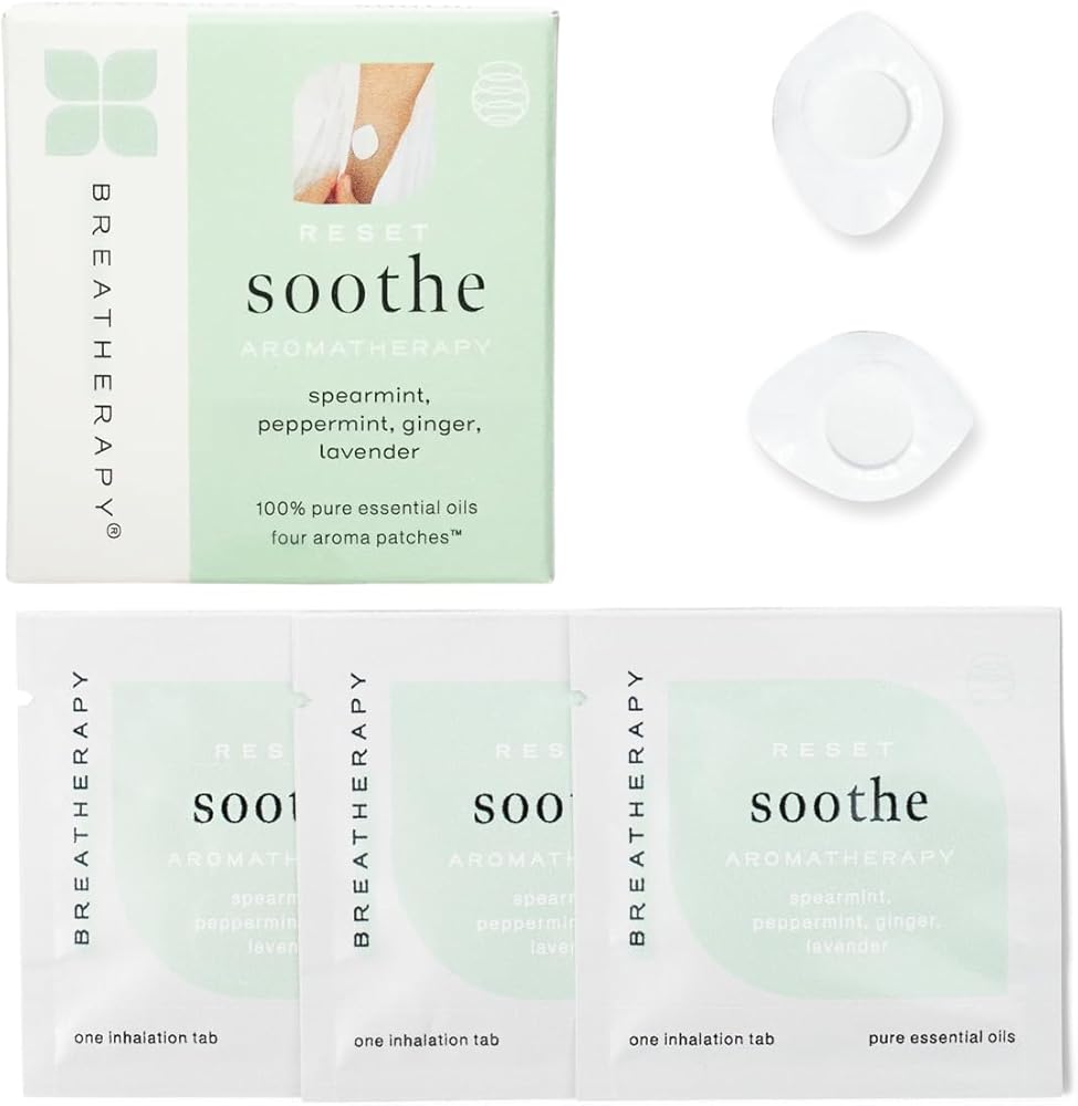 Soothe Aroma Patch: Breatherapy for Soothe is a blend of 100% pure lavender and peppermint essential oils to help you soothe the feeling of abdominal cramps and other related stomach stressors.