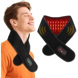 Cordless Neck Heating Pad for Pain, Neck Massager with 660nm 850nm Red Light, Heated Neck Wrap with 3000mAh Rechargeable, 3 Levels Heat & Massage, Black
