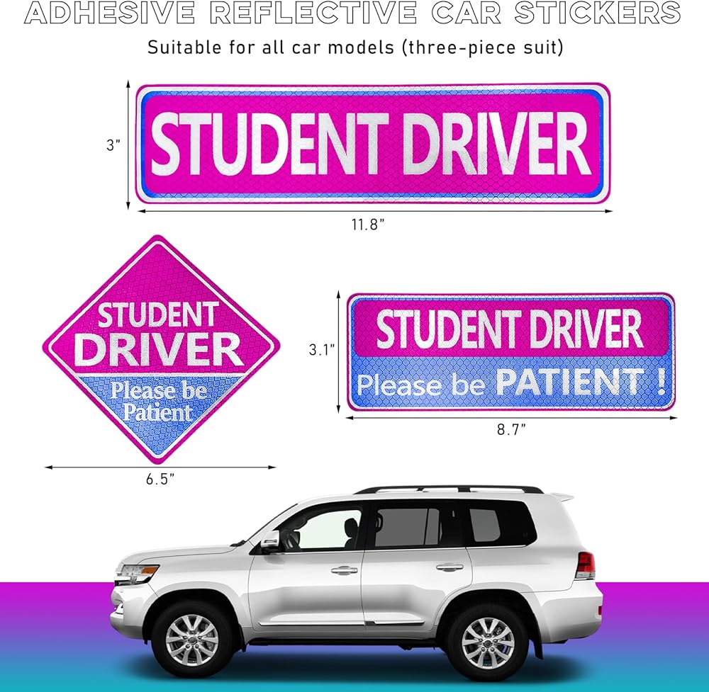 【Bright Color】: Our student driver sticker is made of bright blue and white fonts with eye-catching purple background, it is very easy to attract others' attention, and it can be seen even at a distance. It will remind other drivers to keep a safe distance from your car, and let you focus on driving.