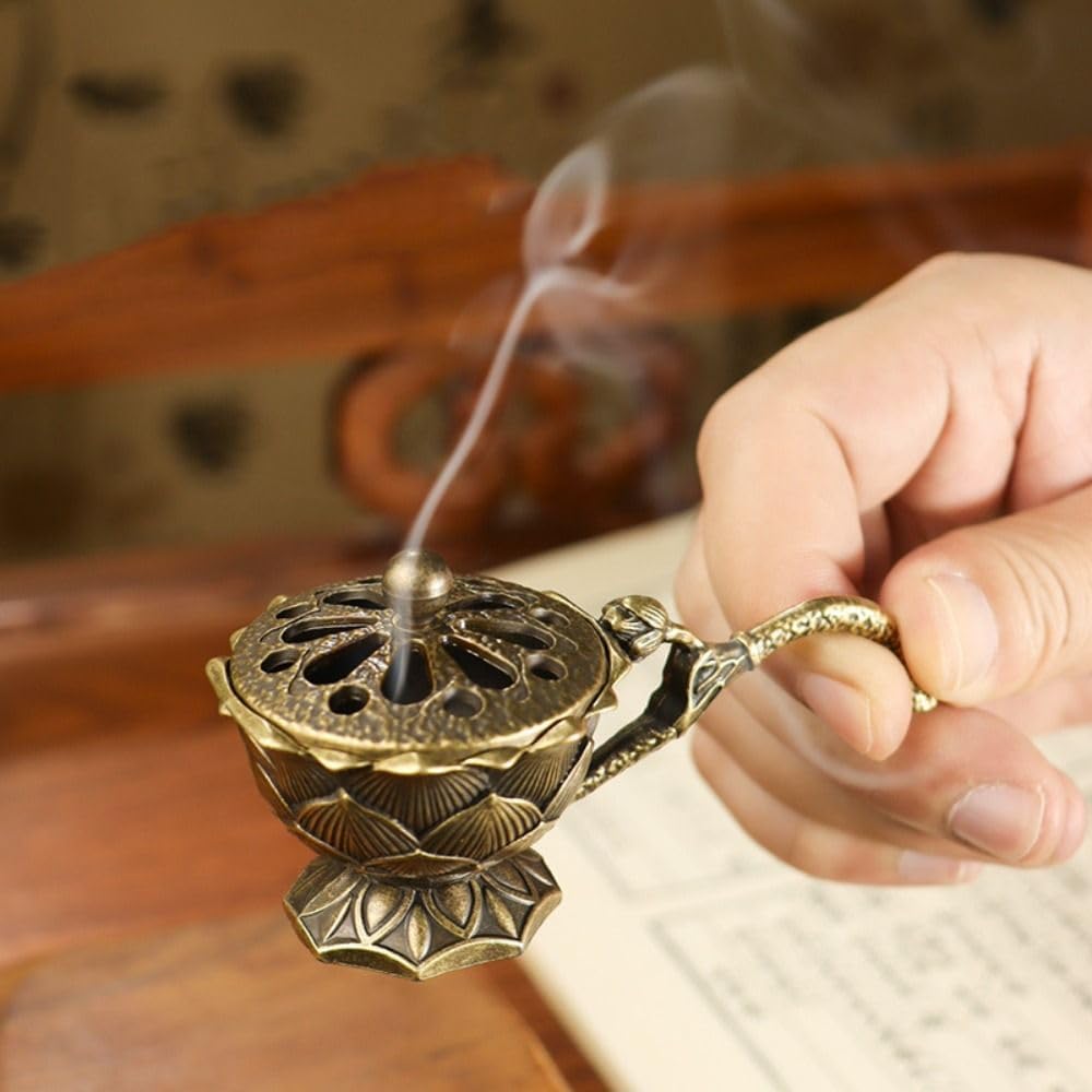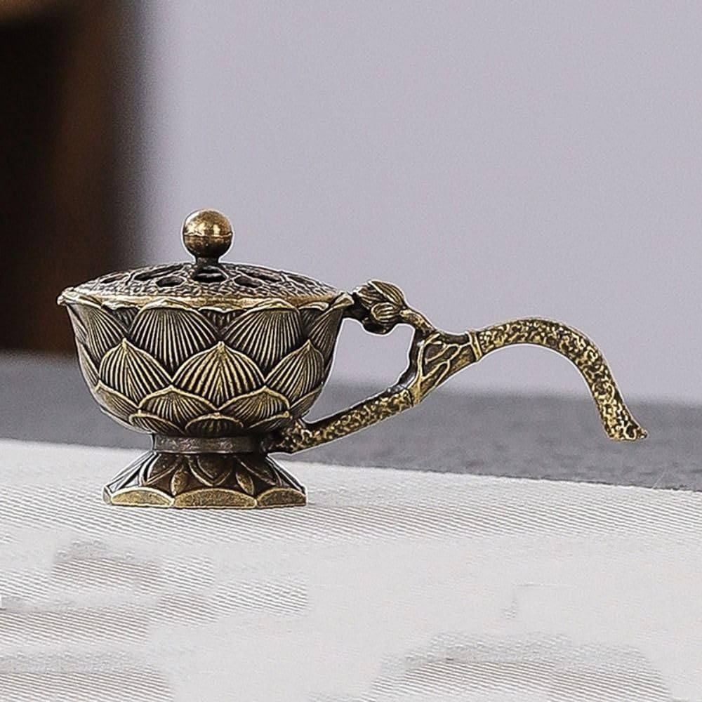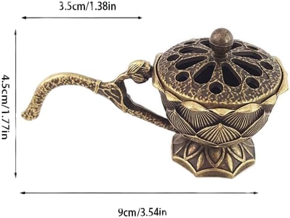 Small Lotus Incense Burner,9cm Incense Holder for Cones,Brass Lotus Flower Incense Holder Hollow Out Ash Catcher with Lid,Brass Incenses Stand Home Vintage Ornaments