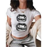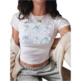 Women's Graphic Bow Short Sleeve Crewneck Crop Tops Slim Fit Y2K Cute T Shirts