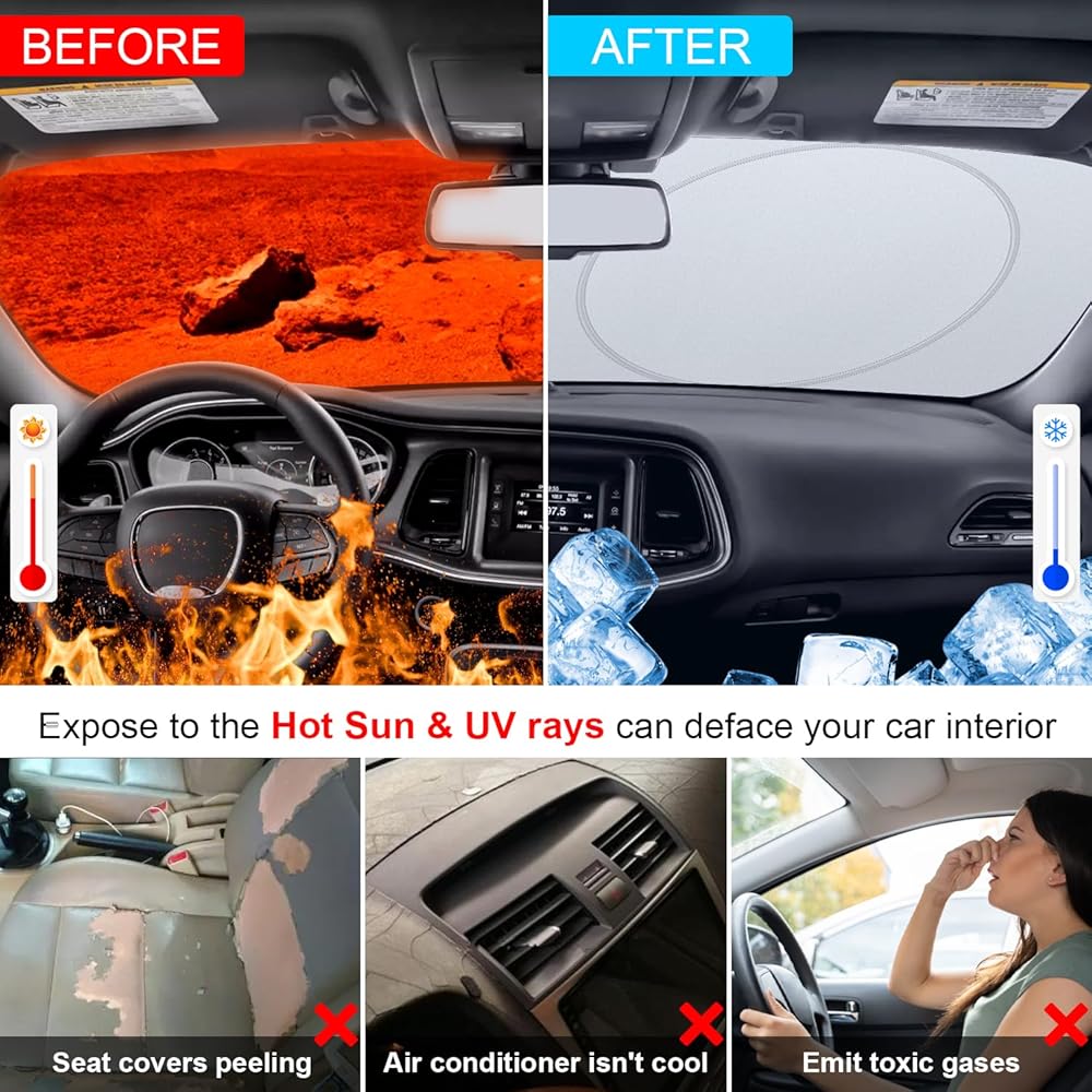 Save Money and Time: The Durango windshield sunshade can help you cool down the car faster after restarting the air conditioner, instead of waiting more than 15 minutes. Saves your money and time while making your drive much more comfortable and enjoyable