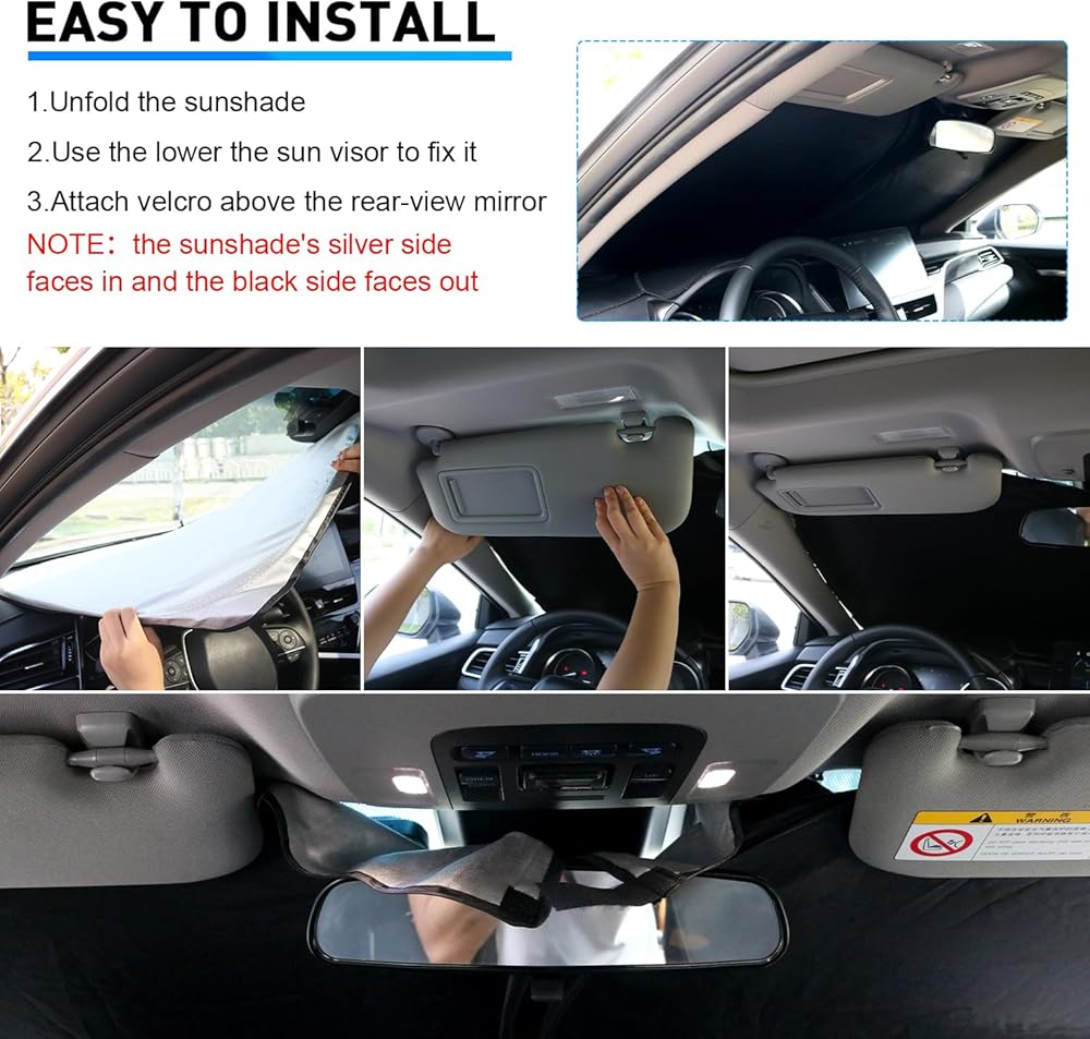 Easy to Install and Store: Unfold the sunshade against the windshield and lower the sun visor to fix it. Desiged with elastic memory steel wire, can be easily poped up and folded for everyday use