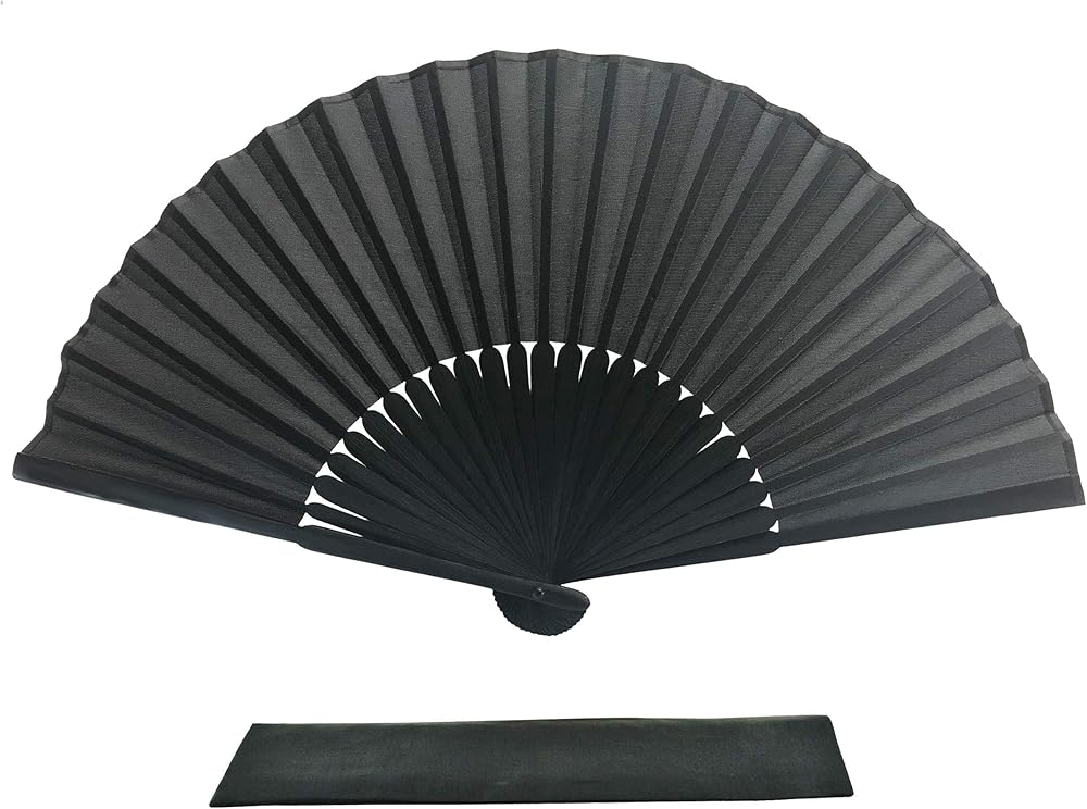 FANSOF.FANS Black Silk Fabric Folding Hand Held Fan with a Pouch Bamboo Ribs Chinese Vintage Handheld Girls Women Wedding Party Favour Gift (Simple Black)