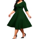 【Elegant Vintage Design】: The wrap-style bodice and A-line silhouette enhance curves while providing a comfortable, breathable fit ,A-line Style, Sweetheart Neckline, 3/4 Sleeves, Side Zipper, Classic Vintage Party Dress, Inspired by 1950s retro fashion, this dress features a flattering V-neck, a cinched waist, and a flowy swing skirt, making it perfect for weddings, cocktail parties, and special occasions. It comes in a few different colors