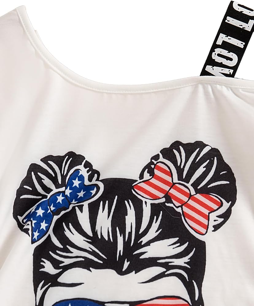 Girl's Asymmetrical Neck Short Sleeve Tee with Skirt Set Two Piece Outfit