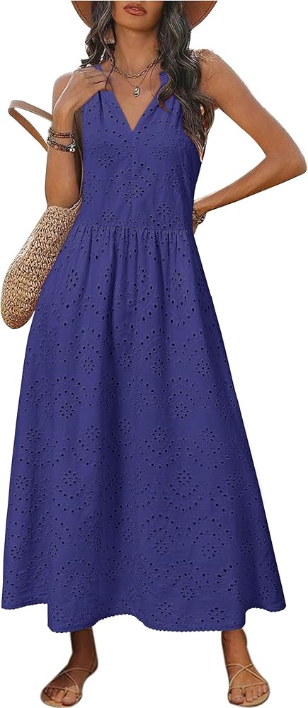 Summer Maxi Dresses For Women Made From Premium 100% Cotton, offering comfort and breathable feeling. Unique hollow out eyelet embroidered, all colors are lined to avoid see-through, comfy to wear all day long