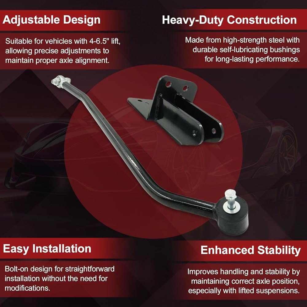 High-quality Material and Construction:The tubular track bar features a Heim joint end and a polyurethane bushing end, providing improved control and steering performance. The powder-coated surface is resistant to rust and corrosion, ensuring permanence and longevity.