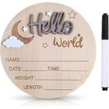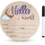 Baby Announcement Sign, 5.9 Inch Wooden Hello World Newborn Signs, Birth Announcement Sign and Pen, Moon and White Cloud Decoration, Welcome Newborn Arrival to World, Hospital Nursery for baby (Black)