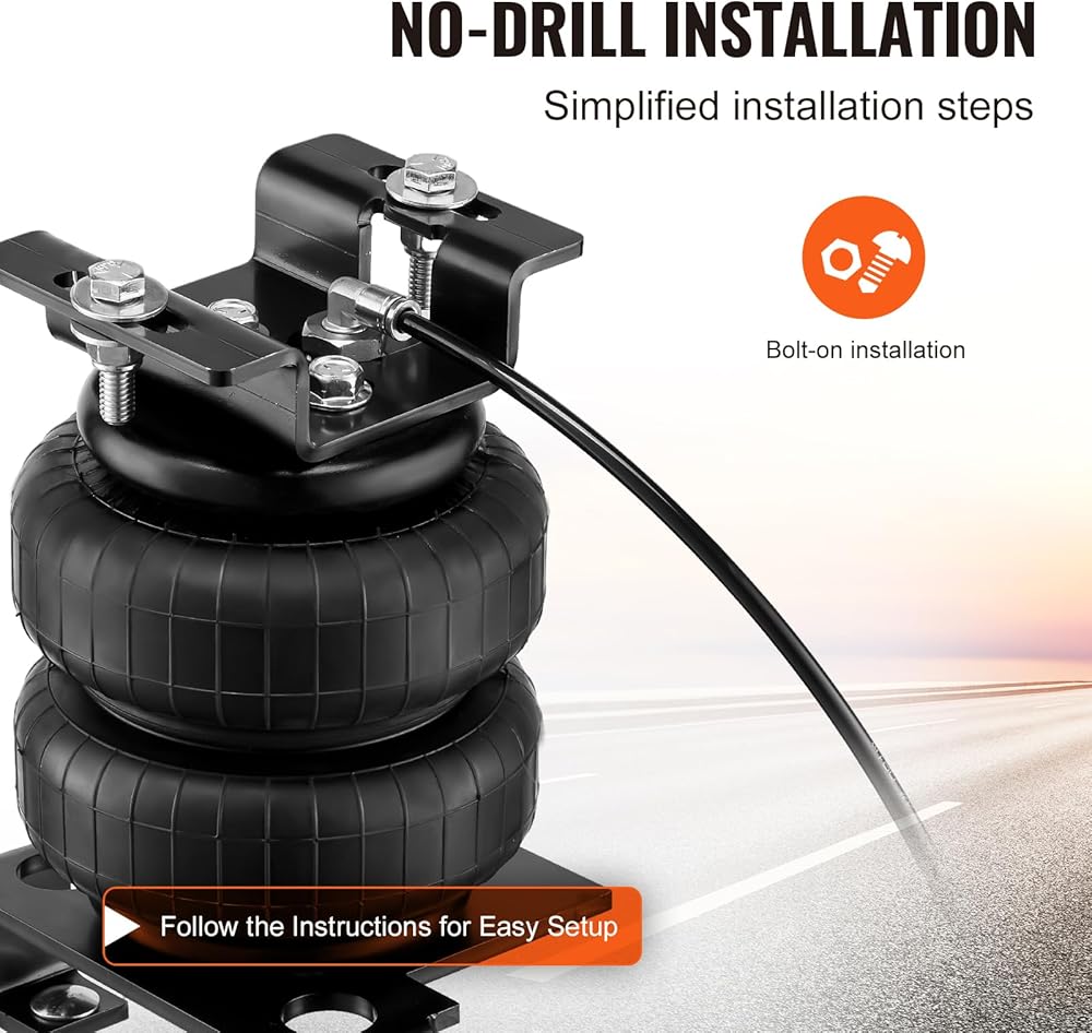 Smooth Ride & Shock Absorption: This air bag kit maximizes your vehicle's load capacity, stability, ride quality, and braking performance. Positioned between the axle and frame, it prevents contact and friction due to excessive load. It allows for height and suspension hardness adjustments by inflating or deflating the air bags, adapting to smooth or rough driving conditions.