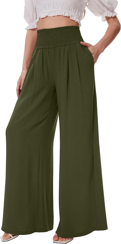 FUNYYZO Womens Palazzo Pants Elastic Waisted Pull On Beach Trousers Casual Wide Leg Long Lounge 2026 Summer Vacation