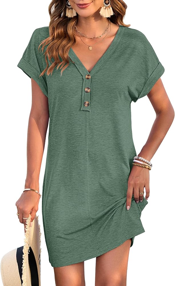 MOLERANI Women's Casual T Shirt V Neck Dress Summer Button Short Sleeve Dresses 2025 Mini Sundresses