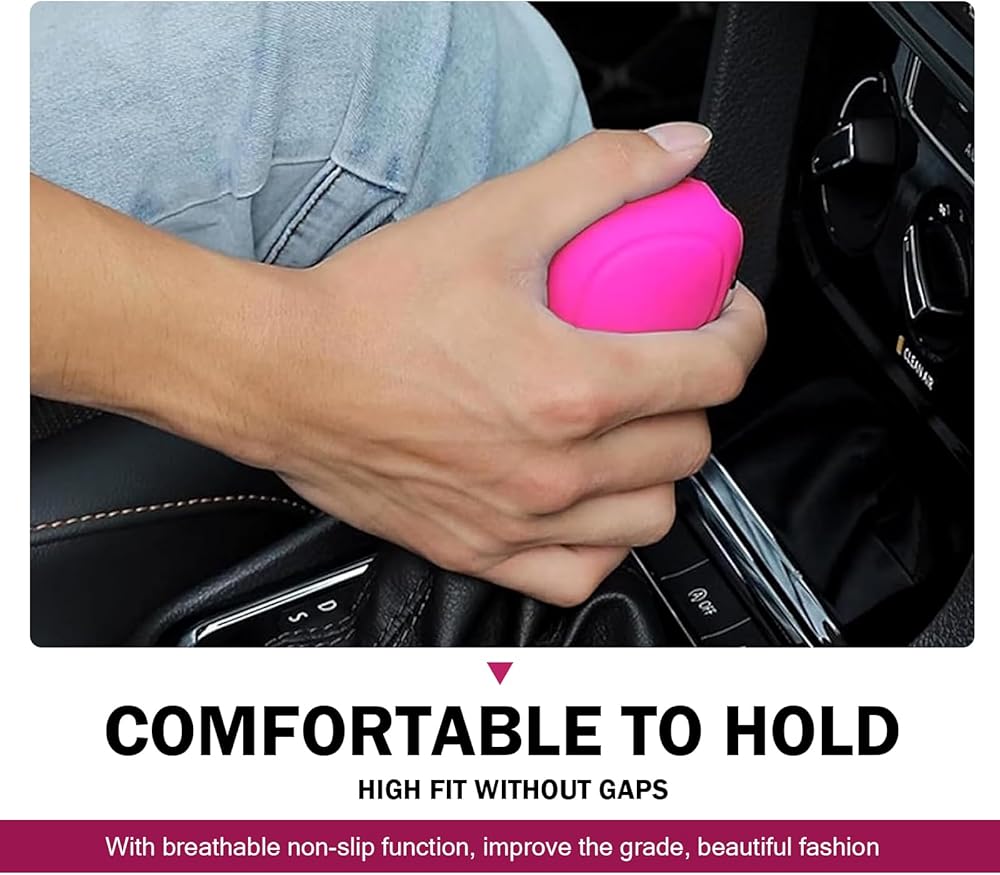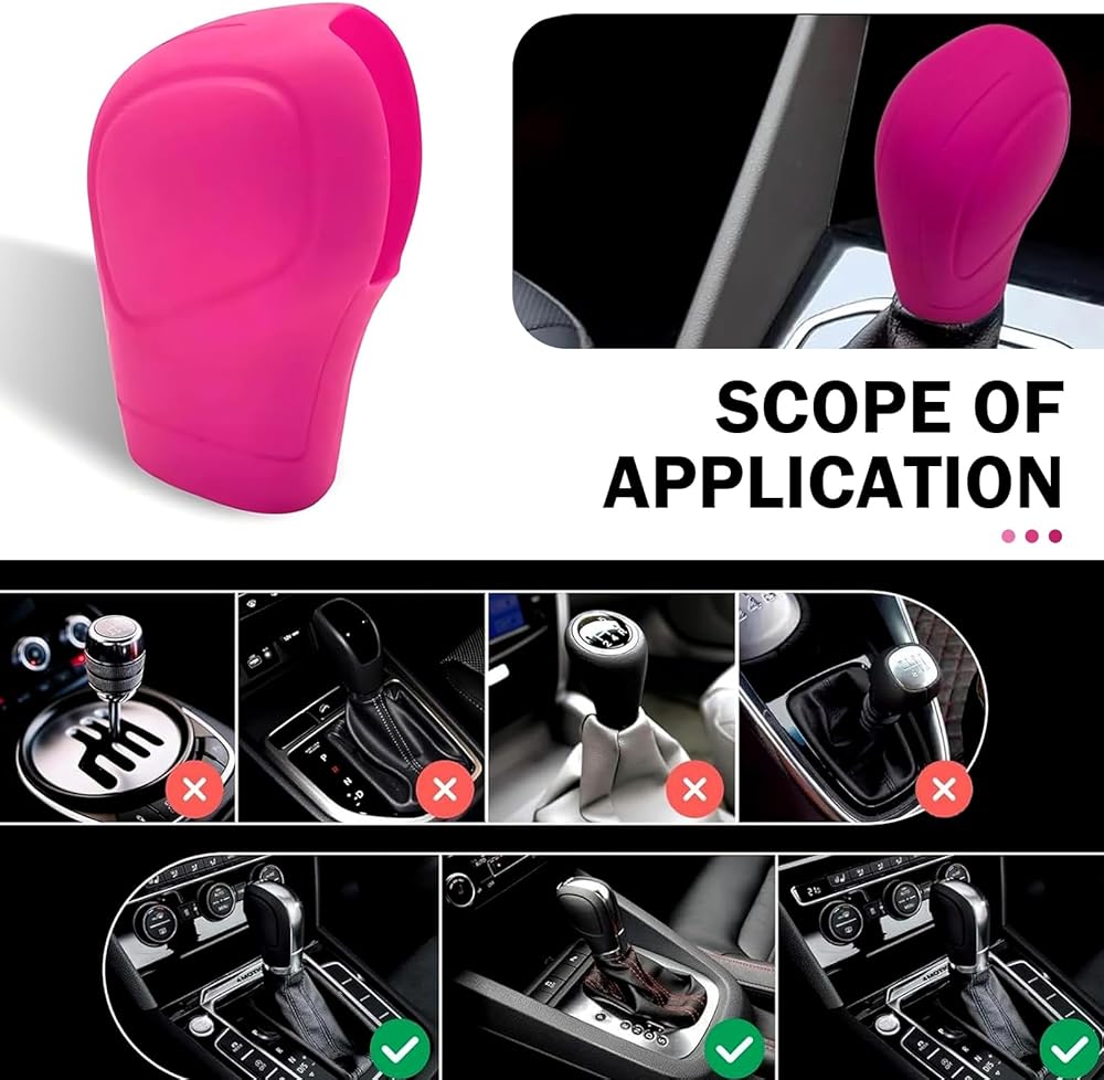 Eratus Pack-2 Car Shift Knob Cover, 2.36" x 3.15" Non-Slip and Scratch-Resistant Shifter Lever Protector, Flexible Silicone Perfect Fit Comfortable Handle Decoration, Universal for Cars (Pink)
