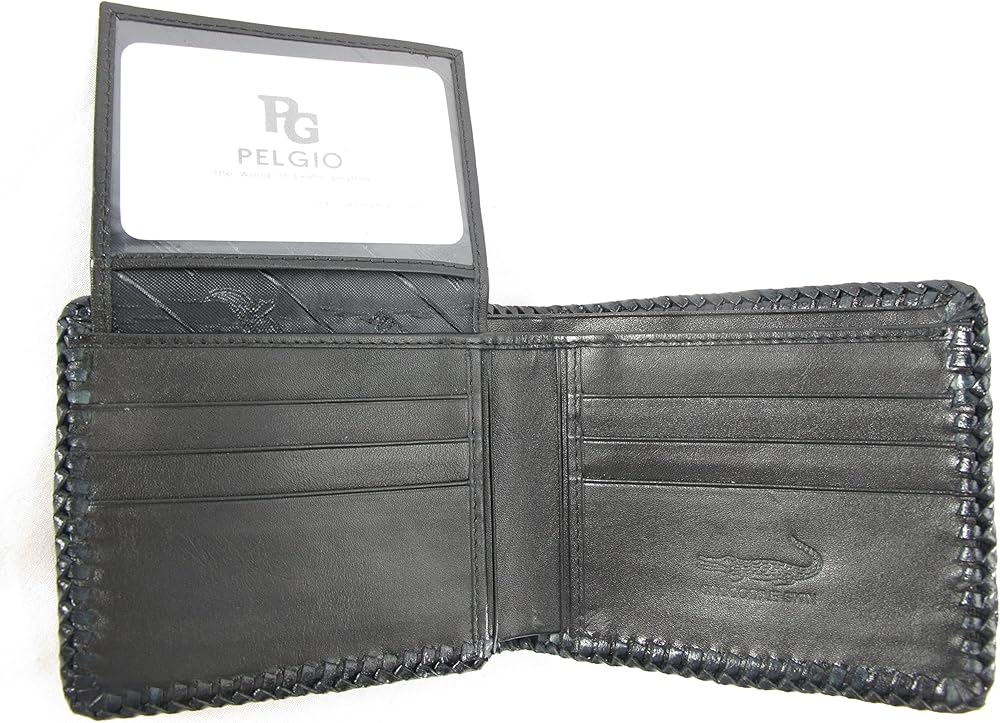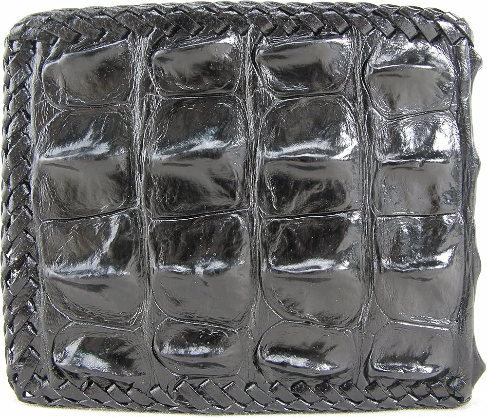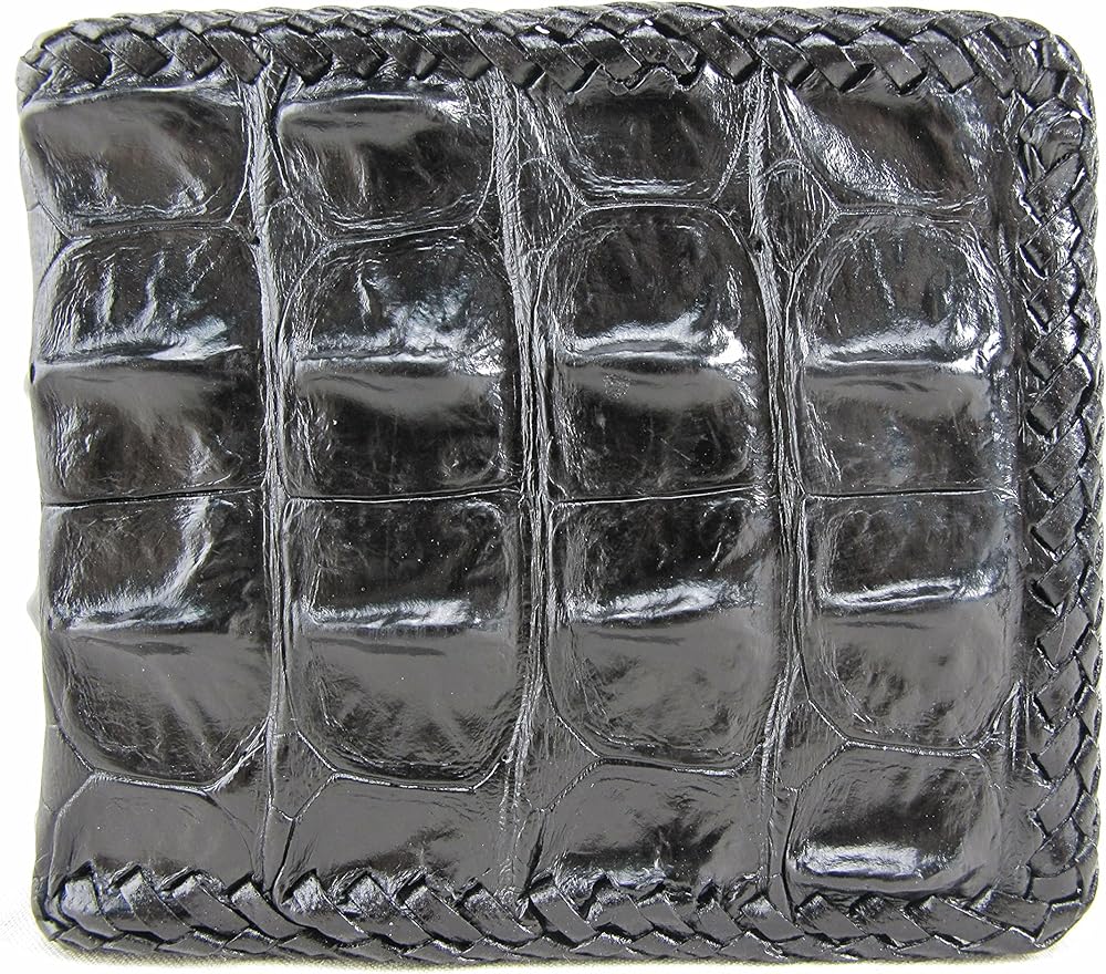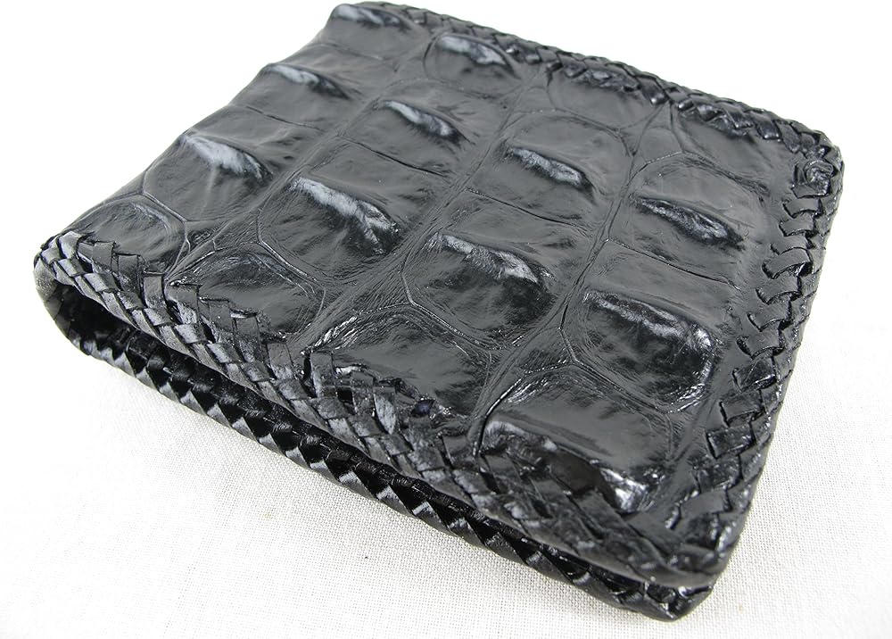 Genuine Crocodile Alligator Backbone Skin Handmade Bifold Wallet ([B1] 6 Card Slots + 2 ID Windows + 2 Compartment for Bills, Black, Black)
