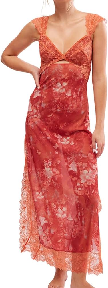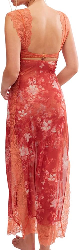 Material: Women sheer mesh long dress made of 95%Polyester 5%Elastane. Soft, breathable, lightweight, skin friendly, stretchy, durable, comfy to wear. Women printed backless bodycon maxi dress, y2k maxi slip dress