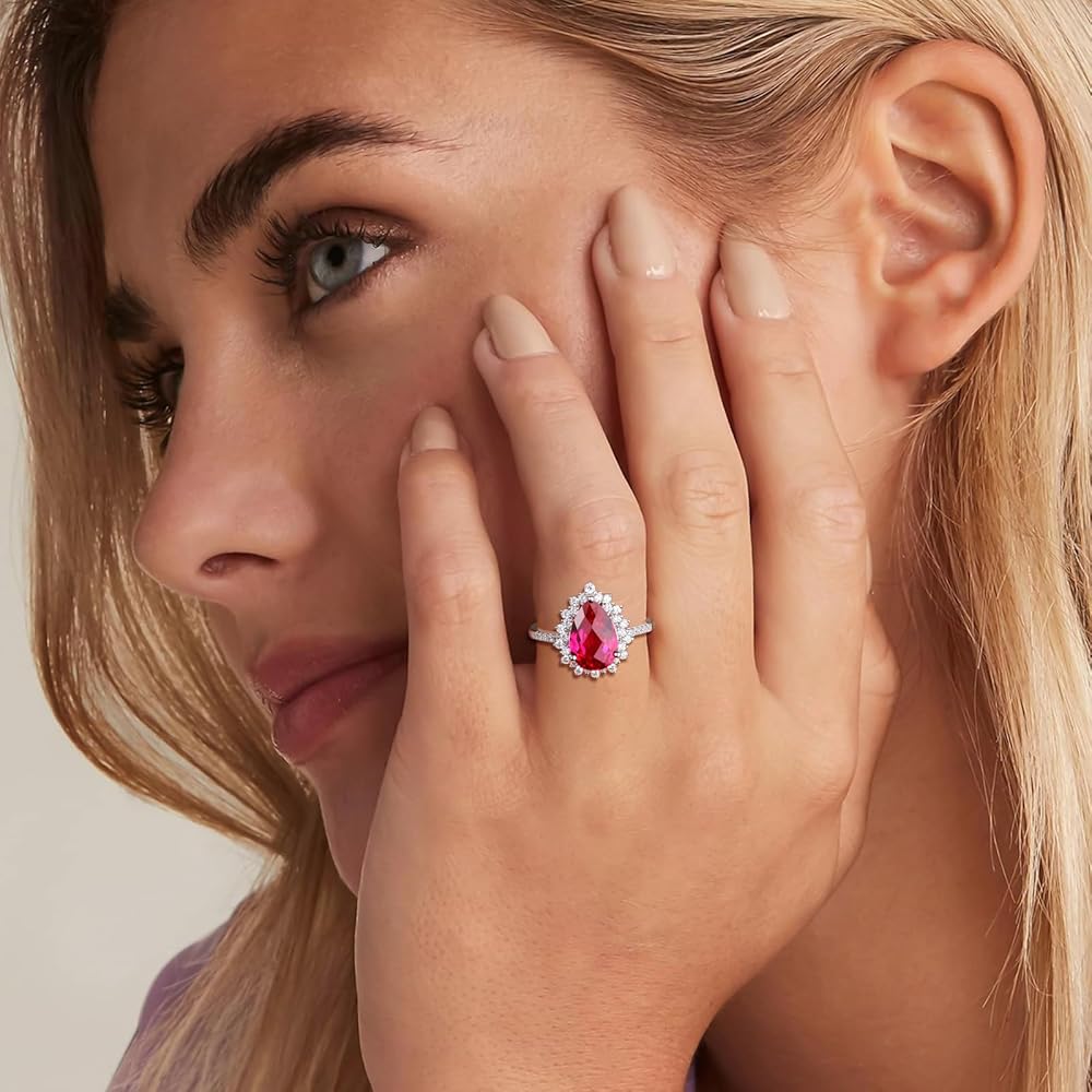 Gemstone Rings for Women: The opal pear ring delivered with a jewelry box, great for everyday wear or as unique engagement ring, anniversary ring, promise ring, or wedding ring for yourself or love ones like wife, grandma, bestfriends