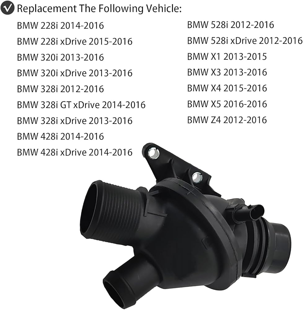 AMCC Engine Coolant Thermostat Housing Assembly Compatible with BMW 228i 320i 328i 428i 528i X1 X3 X4 X5 Z4 N20 2.0L engines Replaces: 11538635689 11538648791 11538636594 11537633477 Replacement Coolant Thermostat Housing With Sensor - Regulates the flow of the coolant going through the radiator to keep the engine in its stable operating temperature preventing it from over heating. Therefore, making it a critical component in the vehicle as failure to replace may damage the engine and other critical parts due to overheating which can leave you stranded on the road Reference OE Part Number - 11538648791, 11538635689, 11537633476, 11537588257, 11537633477, 11538636594, 11538636595. Please Carefully check the part number before purchasing to ensure fitment Replacement The Following Vehicle - Fits for BMW 228i 320i 328i 428i 528i X1 X3 X4 X5 Z4 N20 2.0L. Please Carefully check the detail fitment in the product description below High Quality Material - Using reinforced material, it is built to long lasting durability. Meets or exceeds OEM standards. Our item are designed and manufactured according to OEM AMCC products are guaranteed for one year after sale,100% inspection and testing prior to shipment