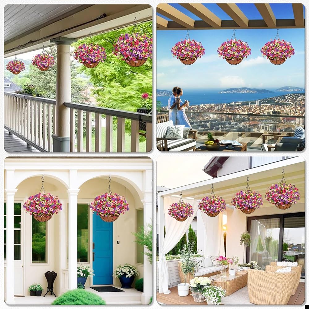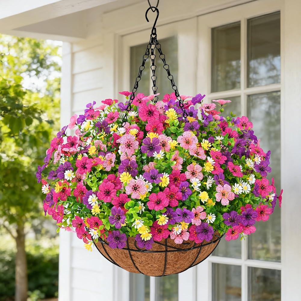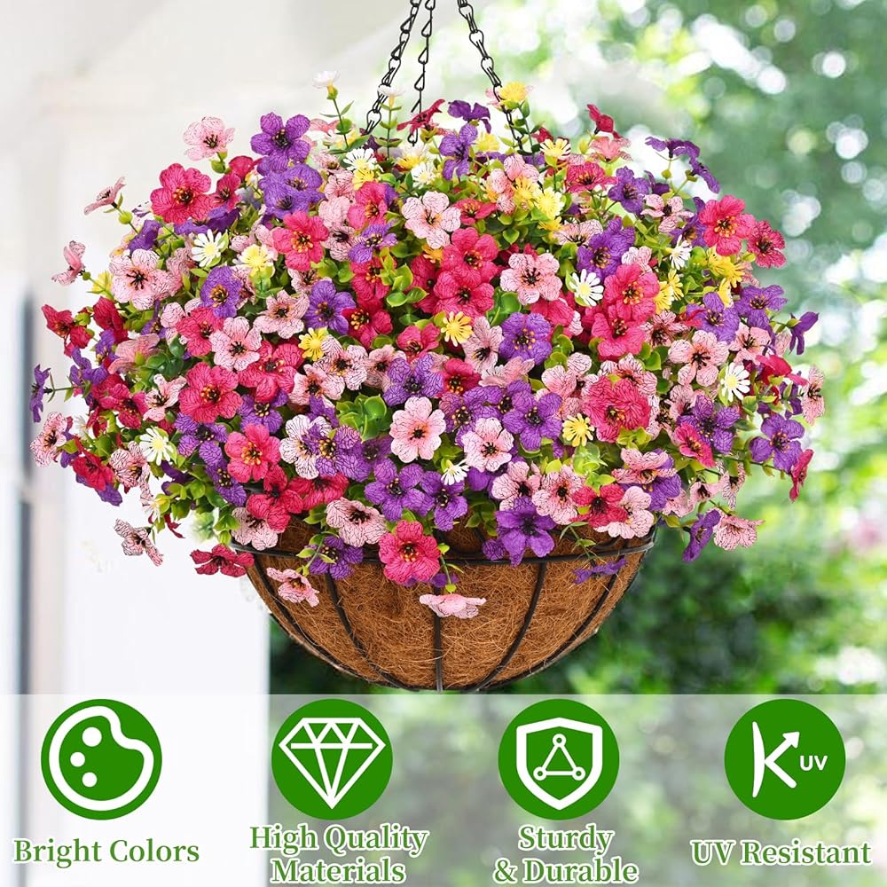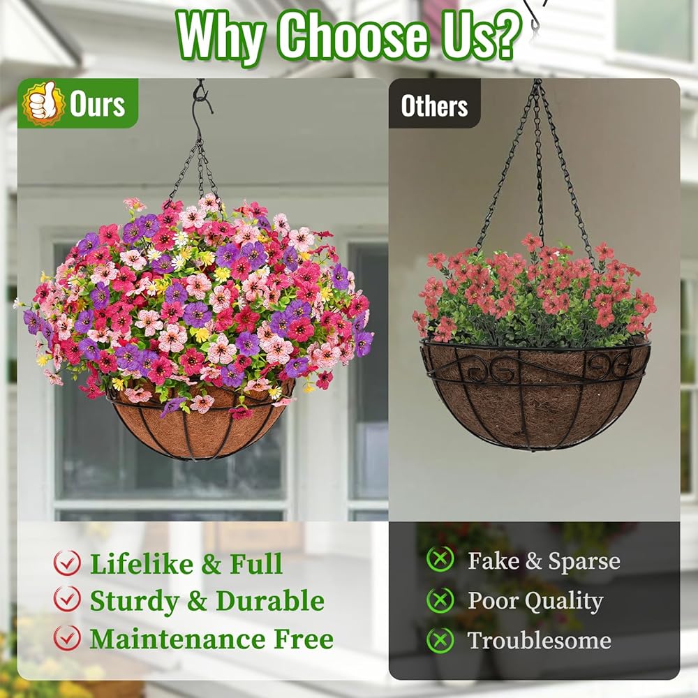 UV Resistant and Fade-Free Vibrancy: Enjoy lasting beauty with our outdoor artificial flowers UV resistant design. Engineered with UV protection, these realistic artificial flowers resist fading even under prolonged sunlight exposure. This ensures that your hanging baskets with artificial flowers for plants outdoor retain their vibrant colors season after season, providing a consistent and stunning visual impact in any outdoor environment.