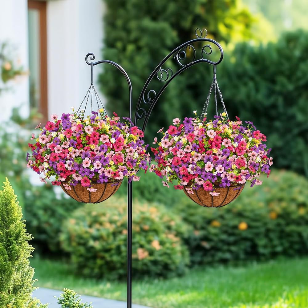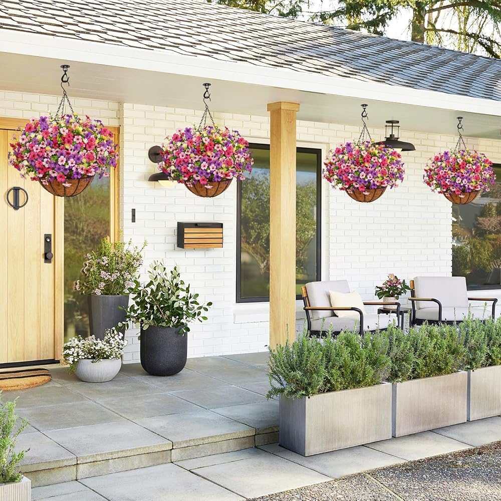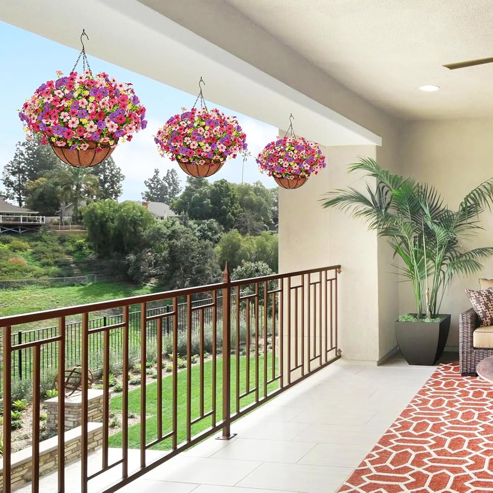 Maintenance-Free Versatility: Say goodbye to constant upkeep with flowers. These artificial flowers for outdoors hanging basket require no watering, pruning, or fertilizing, freeing up your time to enjoy the outdoors. Whether you're decorating a yard, balcony, patio, porch or garden, these artificial hanging flowers for outdoors offer versatile decorating options that enhance the aesthetic appeal of any area while requiring minimal effort.