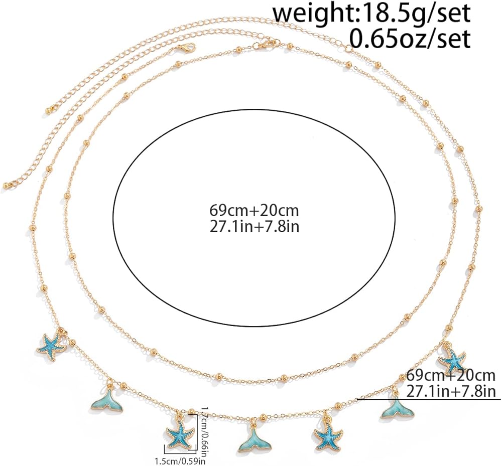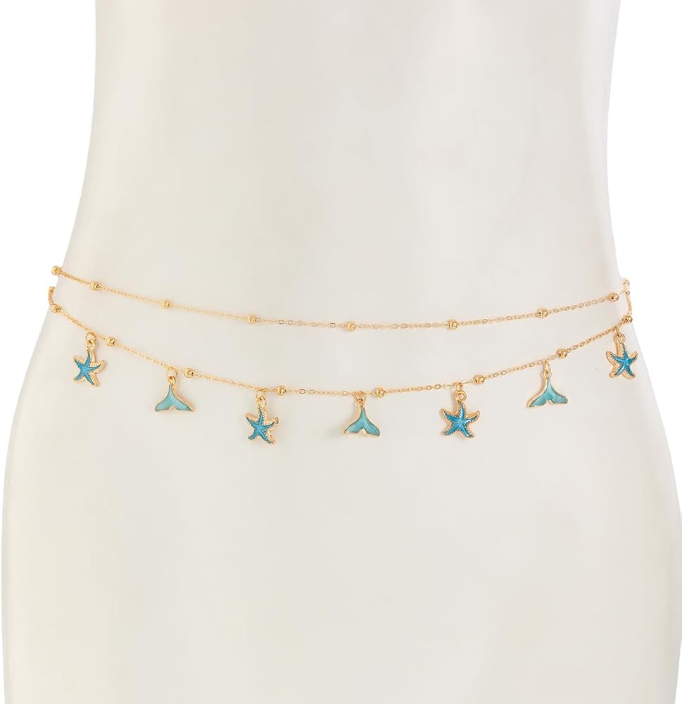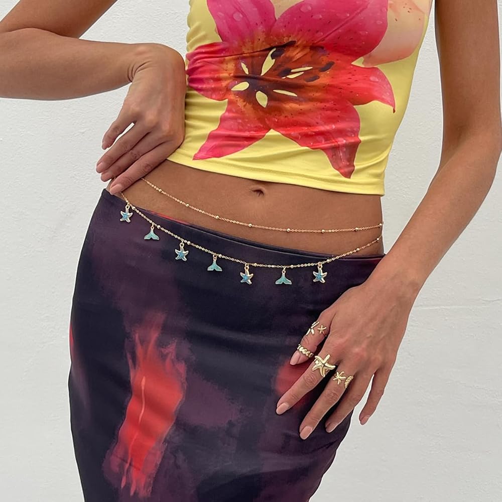Transform into a mystical sea goddess with this enchanting mermaid tail waist chain. Featuring delicate starfish accents and an adjustable design, this versatile body chain adds a touch of ocean-inspired magic to any outfit. Perfect for beach weddings, summer festivals, or adding a bohemian flair to your everyday style, this waist chain captures the free-spirited essence of the sea. The adjustable length ensures a comfortable fit for various body types, while the intricate details make it an eye-catching statement piece. Whether paired with a flowing dress, bikini, or casual beachwear, this waist chain elevates your look with ethereal charm. Makes a thoughtful gift for beach lovers and free spirits who appreciate unique, ocean-themed accessories. The versatile design transitions seamlessly from daytime beach adventures to evening celebrations.