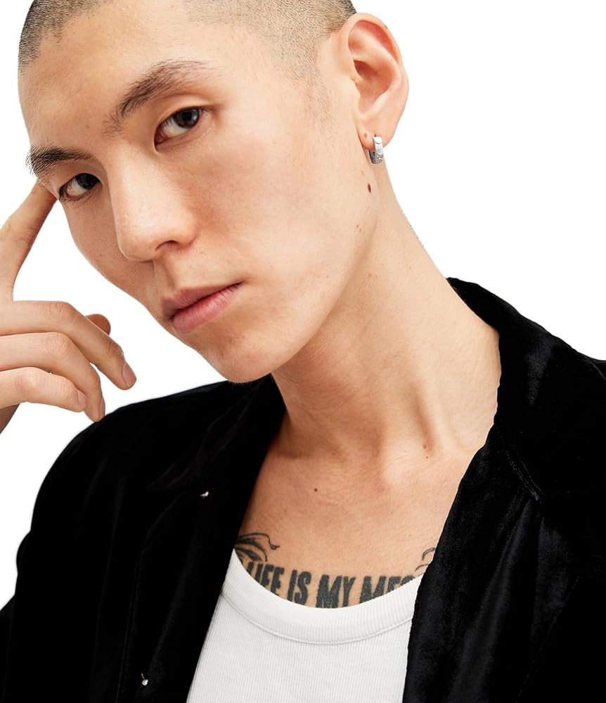 EDITOR'S NOTES : Unisex sterling silver single huggie featuring signature hexagon hardware perfect for everyday. Includes one single earring.