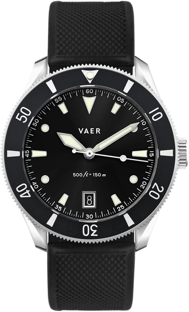 15ATM WATER RESISTANCE (Model: DS2) - Dive deeper with the Vaer DS2 Quartz Dive Watch's 15ATM feature. Perfectly designed for marine explorers, this watch ensures uncompromised performance & and precision at 150 meters underwater.