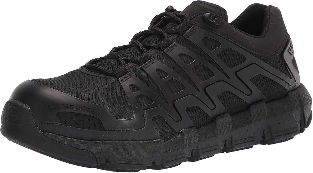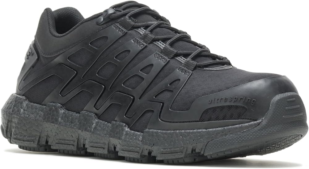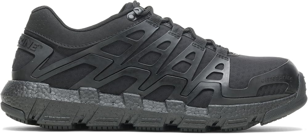 The Wolverine Rev DuraShocks safety toe shoe with UltraSpring™ cushioning is anything but ordinary. The slip resistant outsole is built with Wolverine's best-known comfort technology, DuraShocks Flex, tuned for maximum flexibility, shock absorption and comfort for long days on your feet. The Rev has the highly responsive UltraSpring midsole cushioning that provides a lightweight, energized ride to push through the day