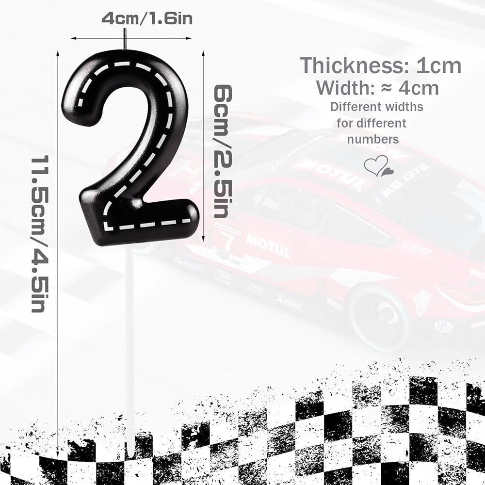 Ideal Size for Racing Car Themed Cake Toppers - The birthday candles are approx. 4 inches / 10 cm long; the width is approx. 1.57 inches / 4 cm; number 2 candles; ideal cake topper for most birthday cakes and celebration cakes; please make sure you measure before purchasing to enjoy the exquisite cake and candle combination