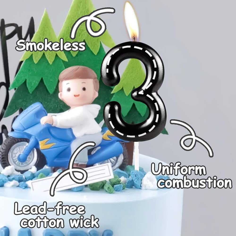 Zolunu Racing Car Birthday Candle, Metallic Black White Checkered 2nd Birthday Cake Candle, Number 2 candle, Birthday Cake Topper for Boys Girls Race Car Themed Party Decorations Supplies