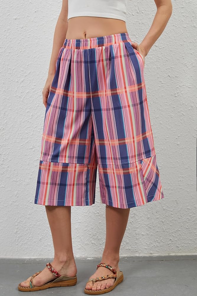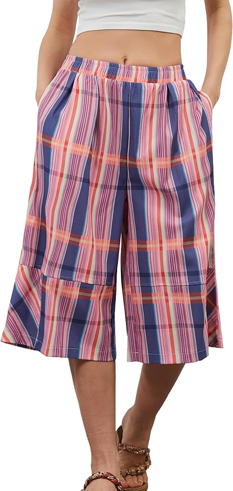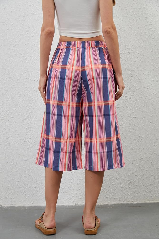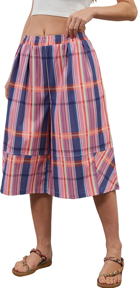 Material: Gingham culottes for women, casual wide leg plaid cheak patterns pants, made of 100% polyester fabric, lightweight and comfortable. Soft, comfortable and breathable for hot summer days