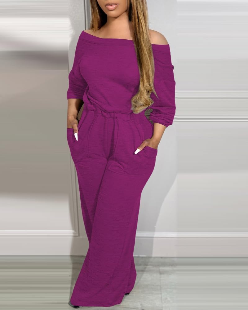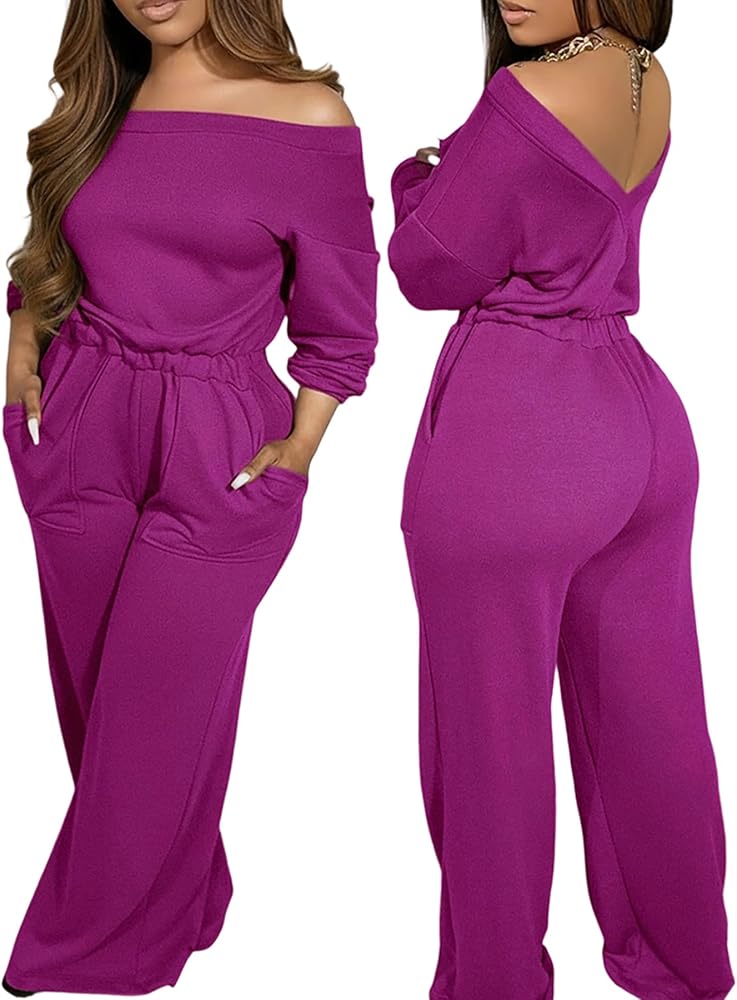 FEATURES: The Wide Leg Jumpsuits For Women features Crewneck, Long Sleeve Romper,Dressy Jumpsuits For Women,the Elastic Waist, The Stunning with a Backless Design,adds a touch of allure and elegance, making this jumpsuit a standout choice for any wardrobe