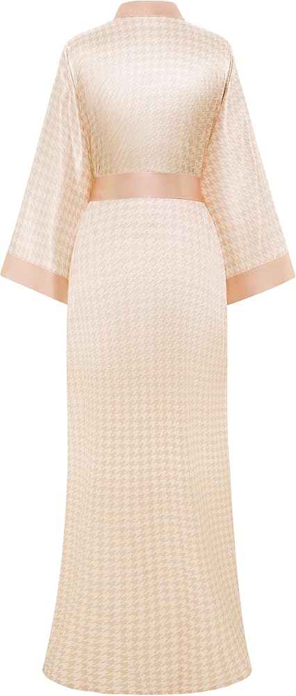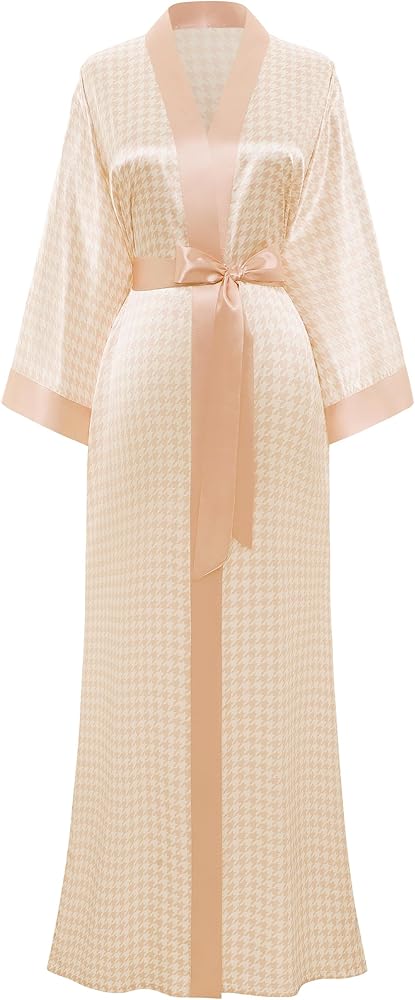 PRODESIGN Kimono Robes for Women - Houndstooth Satin Sleepwear Silky Nightgown Bathrobe Dressing Gown Blouse Cardigan Robe