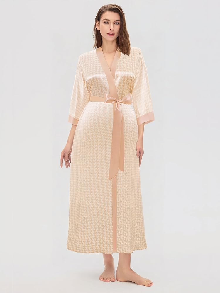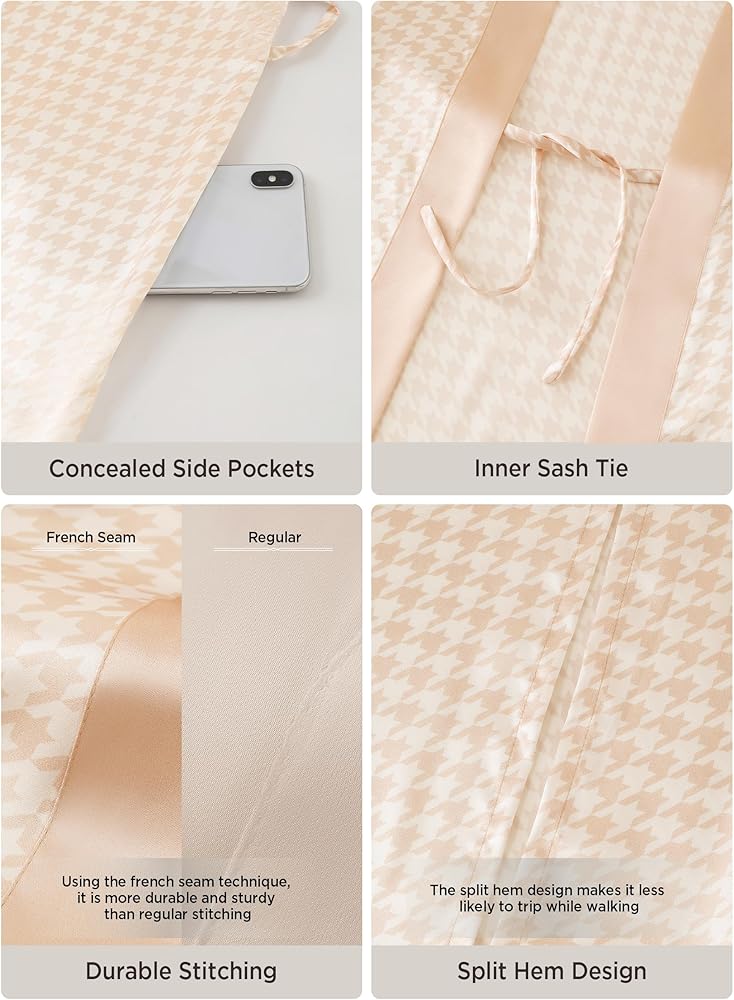 Design: Completed with durable french seam and decorated with houndstooth motif, the satin kimono cover up will add extra understated luxury to your daily look