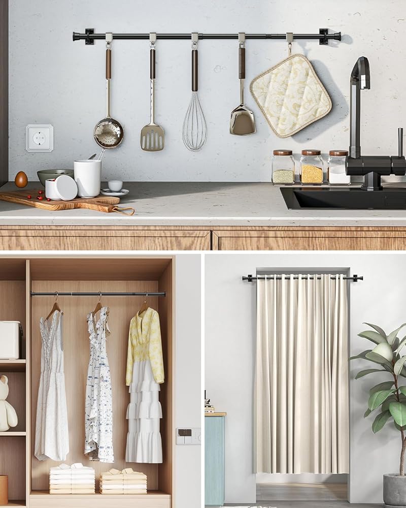 【Multi-Application】This small tension rods is best suited for windows, doorways, laundry room, and cupboard with sizes ranging from 24 to 48 inches. It offers great adjustabilities to fit your specific needs.