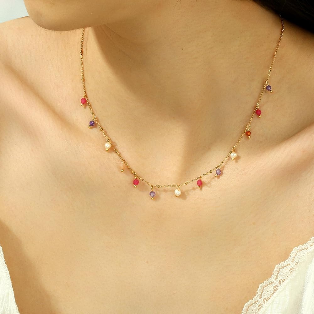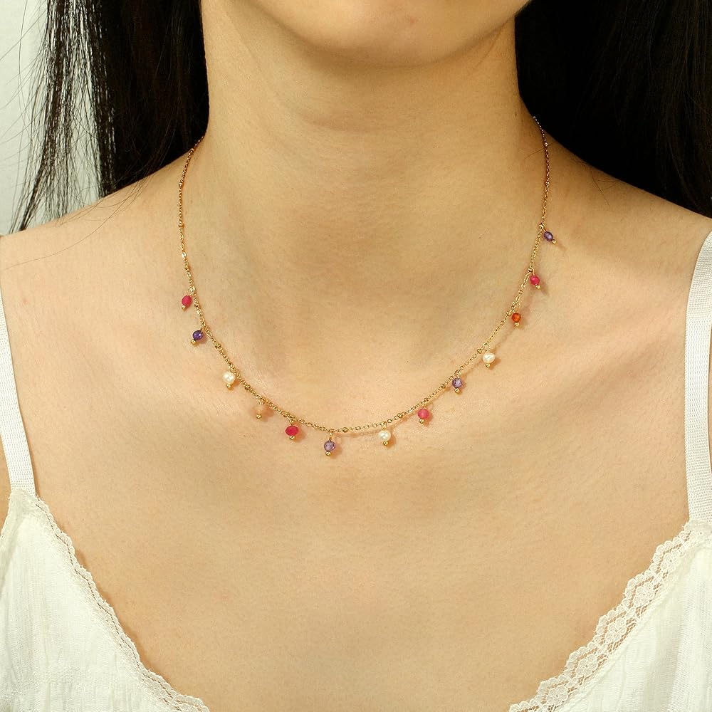 Colorful Beaded Charm: Enhance your style with the vibrant beauty of this gold multicolored beaded necklace, featuring a captivating design with an array of colorful beads that exude a playful .