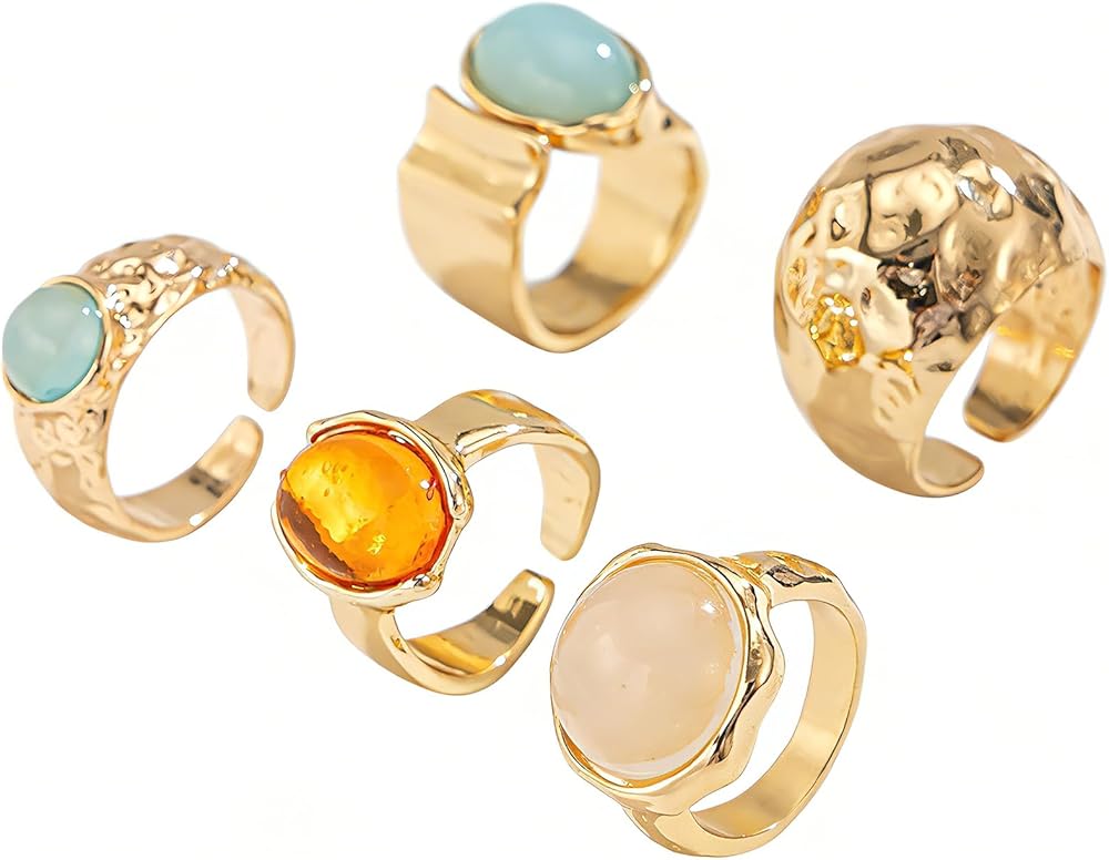 Good Choice: These stunning Chunky Gold Gemstone Rings make an ideal Jewelry for birthdays, anniversaries, or special occasions, delighting the women in your life with their unique beauty.