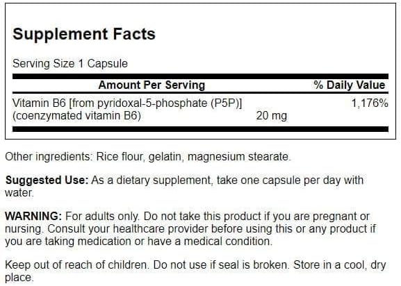 Swanson P-5-P (Pyridoxal-5-Phosphate) Coenzymated Vitaminb-6 20 Milligrams 60 Capsules (1 Pack)