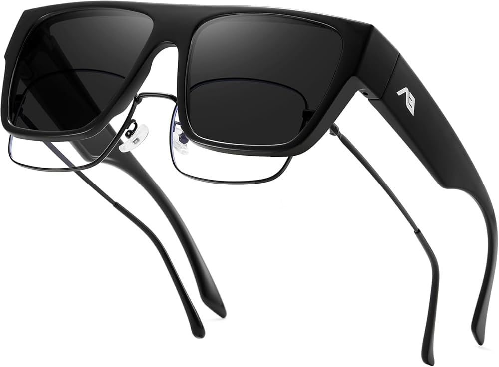 SUNGLASSES FIT OVER GLASSES: Specifically crafted for glasses wearers, these polarized sunglasses boast a large frame and wide temples,enough to cover your glasses well. Suitable for people who wear glasses or with normal vision can also wear them alone.