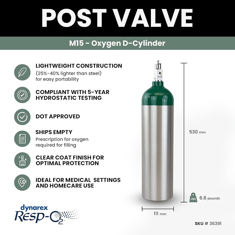 Dynarex Resp-O2™ Oxygen Cylinders are high-quality oxygen tanks designed to safely contain liquid oxygen in medical and homecare settings. The lightweight Cylinders are easily portable and feature a brushed aluminum surface with a clear coat finish for optimal protection. These standard post-valve cylinders are available in a full range of sizes to meet a variety of needs.