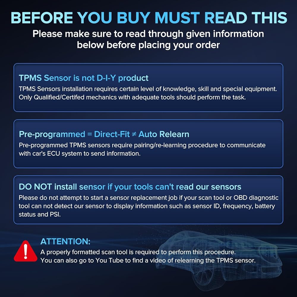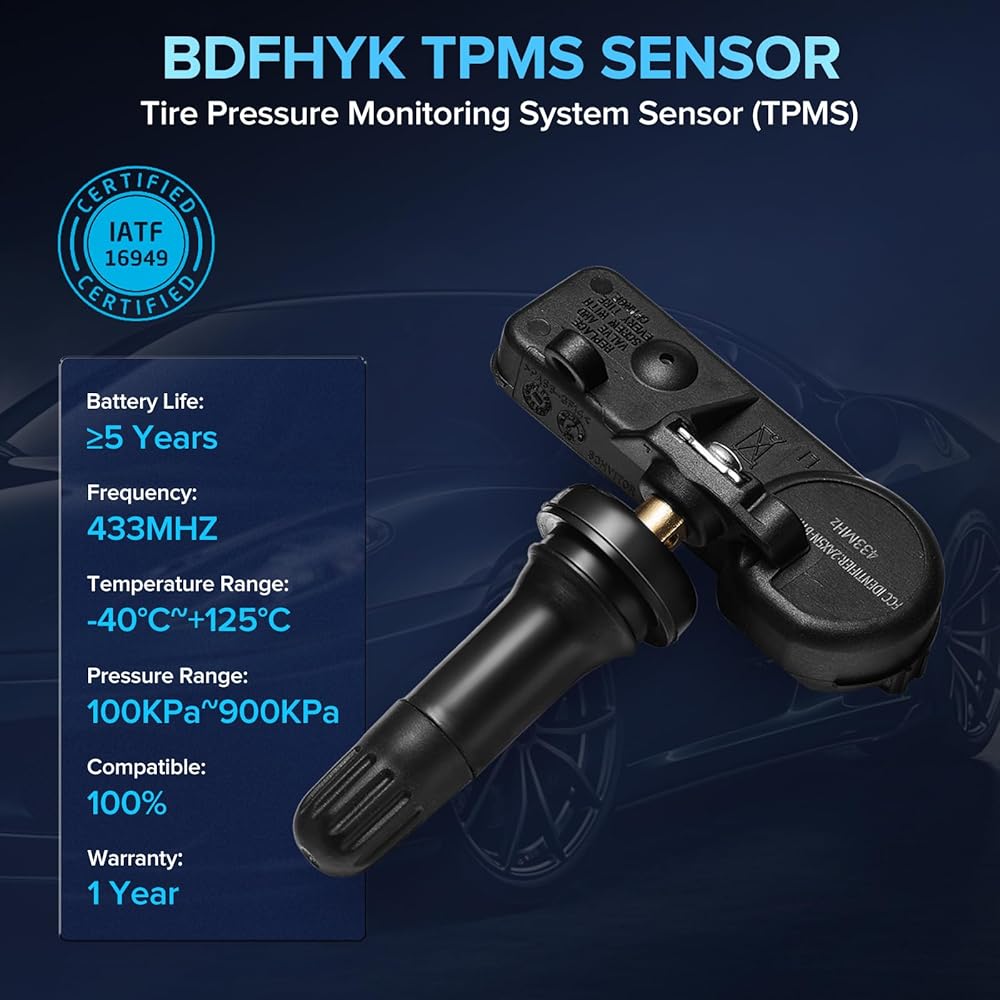 [Customer Service] : 1-year Assurance. All BDFHYK Tire Pressure Monitoring System (TPMS) sensors undergo rigorous testing during manufacturing to ensure top quality. If you have any questions, please do not hesitate to contact us. Your satisfaction is our top priority