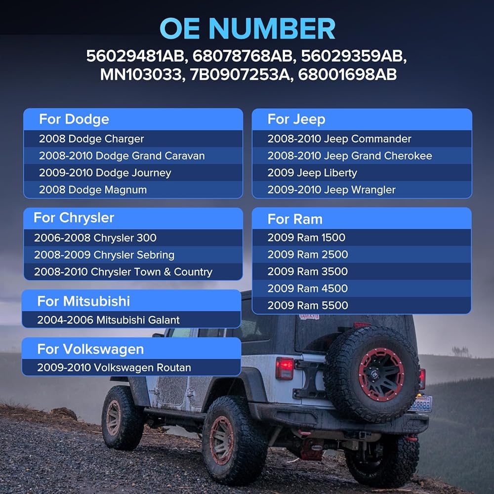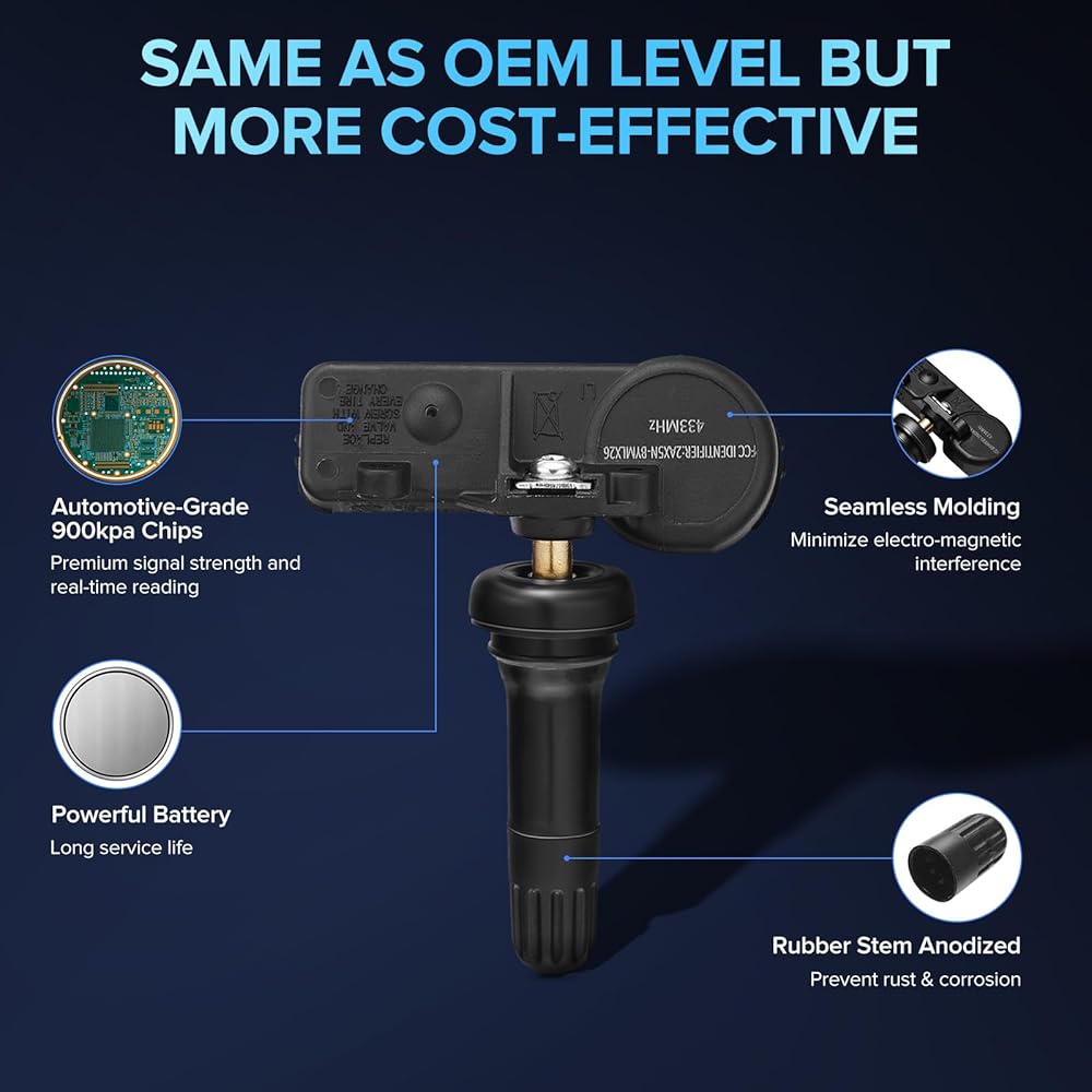 【Preprogrammed】: This tire sensor comes pre-programmed(can't program by yourself) and OE validated as direct-fit to replace 56029481AB,68078768AB,56029359AB,MN103033,7B0907253A,68001698AB.