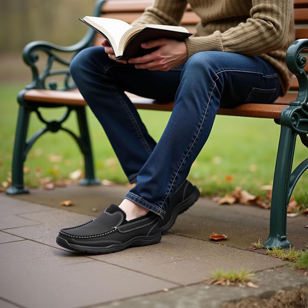 Premium Leather Upper for All-Day Comfort:Crafted from high-quality leather, these loafers offer a luxurious fit that molds to your feet, ensuring ultimate comfort and durability. The supple leather provides breathability, keeping your feet fresh and comfortable throughout the day.