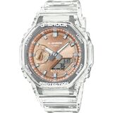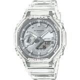 The shimmering color and cool translucence of the GA-2100BM. The GA-2100 with octagonal bezel is paired with a dial finished in metallic vapor deposition in popular color — silver — offset by a translucent band for a confidently cool look.