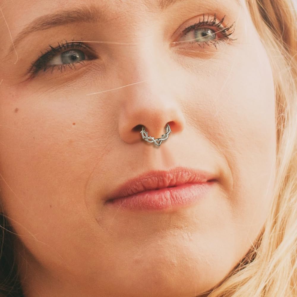 Warm Tip: Before inserting the nose ring, clean the septum ring piercing area with alcohol wipe to ensure hygiene. Gently open the hoop, carefully insert it into the piercing, and securely close the clasp. Regularly clean your nose ring for a comfortable and safe wearing experience.