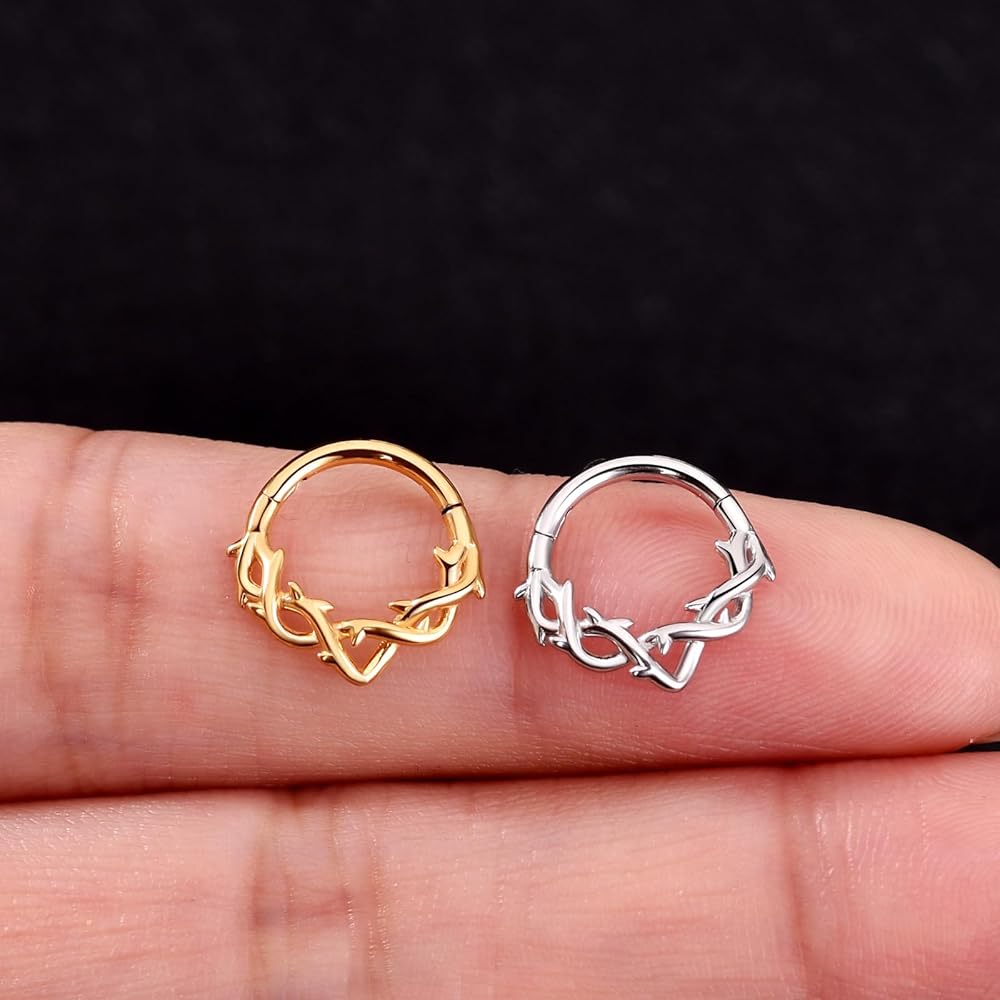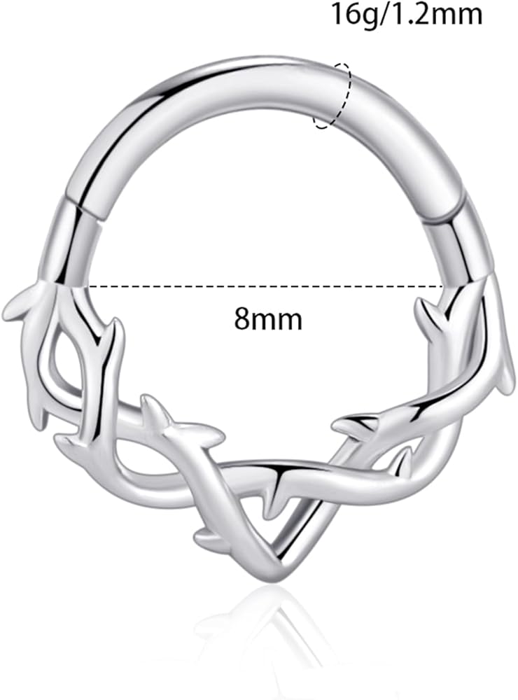 Versatile Usage: This hoop can be used as a nose ring hoop, septum jewelry, septum clicker, or ear piercing ring. It's suitable for various piercings such as helix, cartilage, conch, forward helix, rook, daith, tragus, snug, anti-tragus, second or third lobe piercings, lip rings, and even nipple piercings