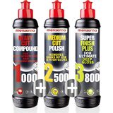The Menzerna polishing program is designed to make buffing and polishing your car as easy as possible. Depending on the degree of surface defects and the desired result, you start with one of our Heavy Cut products (red label), then one of our Medium Cut products (yellow label) or Finishing products (green label) or use these products in combination if necessary. Always work from heavy cut to finish. Some of our products even combine 2 or more products (400, 3in1), so you save effort and get to your destination faster. The color of the labels correspond to the color of the matching pads. This way, you will not be confused by the variety in different compounds, polishers and wax sealants.