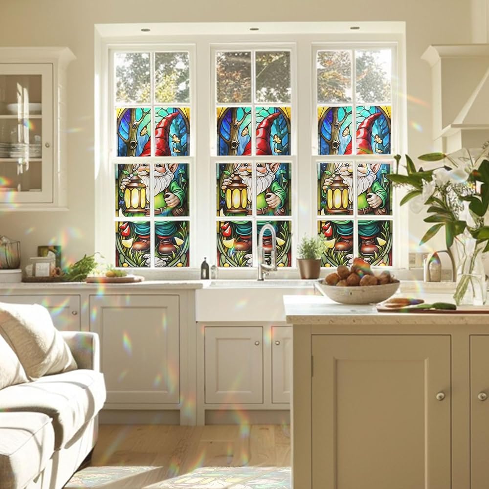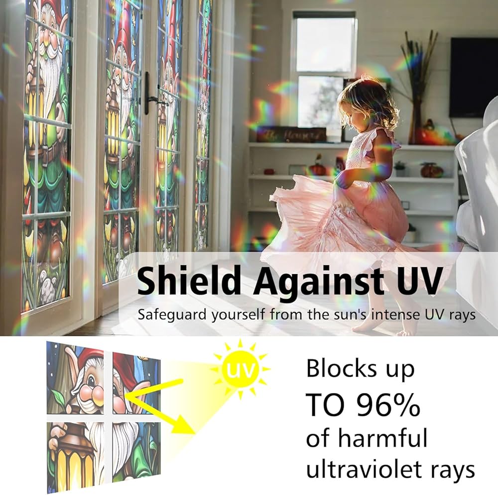 🌞 UV Protection & Heat Control: Designed for smooth, flat glass surfaces only, this window cling reduces heat transfer and blocks up to 95% of harmful UV rays. It helps protect your skin from radiation while minimizing fading and aging of furniture, making your home more comfortable and stylish. We have many motifs animals such as : Lighthouse, Tractor, Truck, Hippie, Rainbow Sugar Skull, Cat Sugar Skull, Sugar Girl, Sugar Skull, Mysterious Cat Eyes, Gnome, Dragon's Eye Hypnosis.
